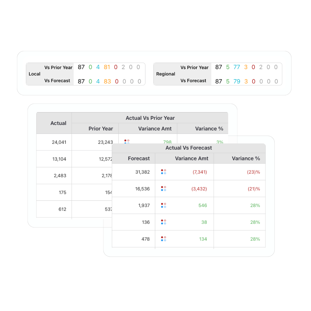 • Forecast vs. actuals.