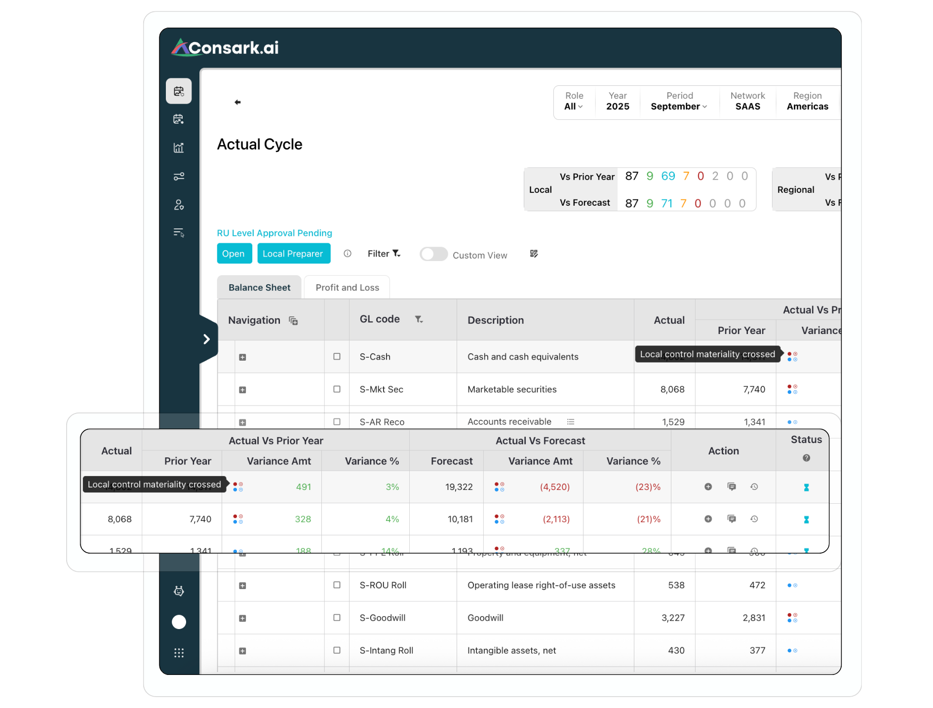 Consark prepares variance explanations continuously, so finance teams review movements with context, not scramble for answers at the last minute.