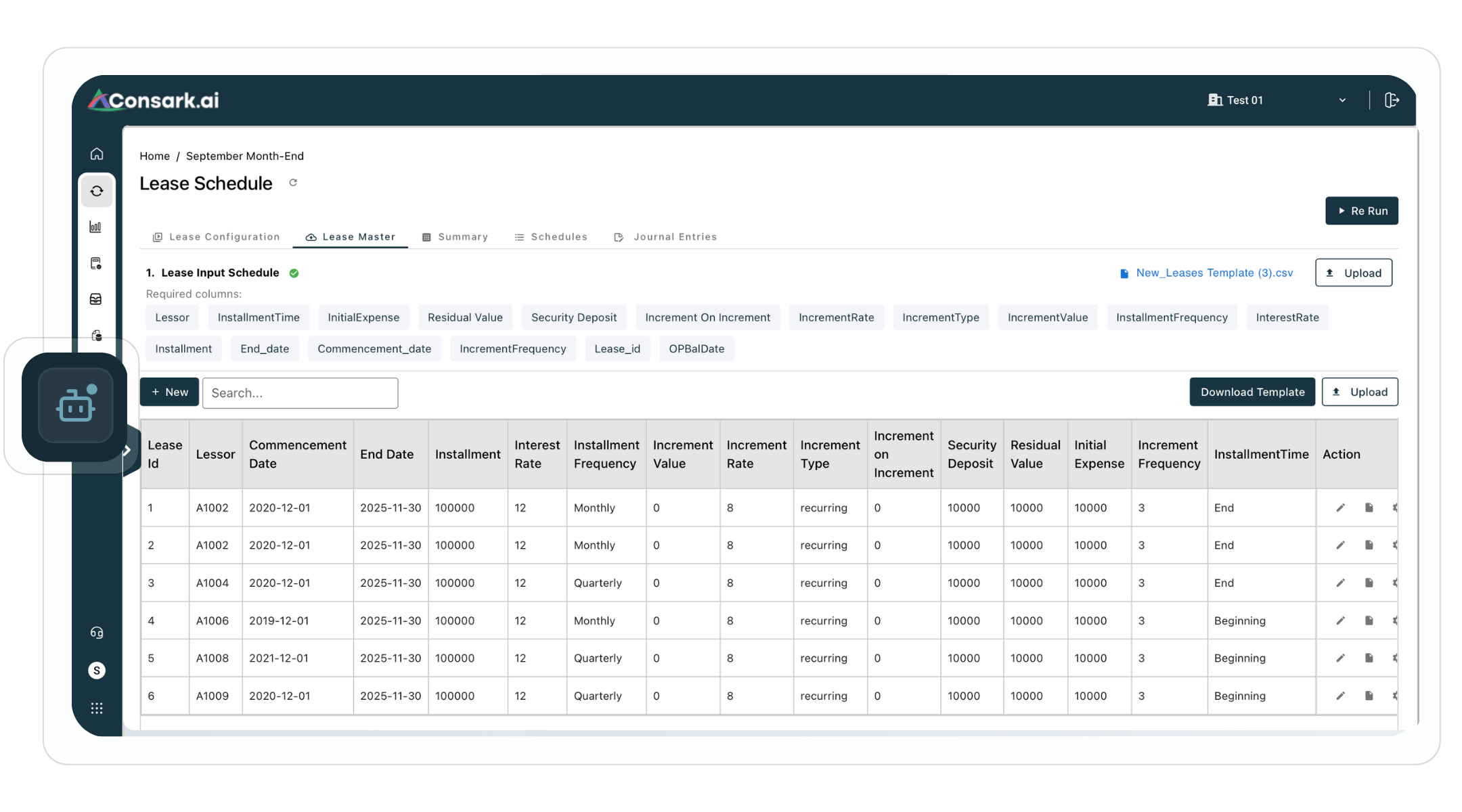 Lease schedules never fall out of sync. Every update is carried forward accurately and consistently.